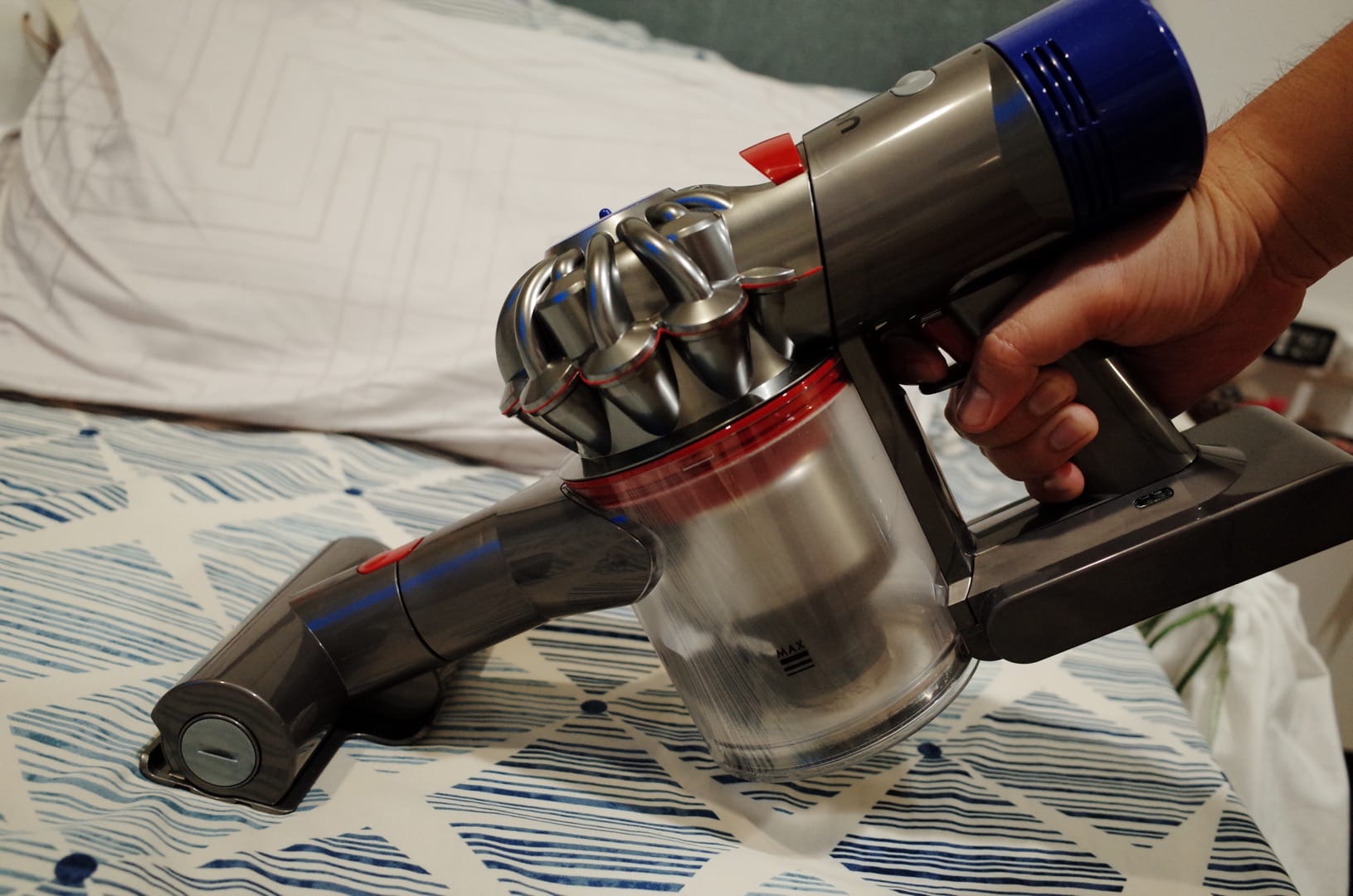 ทั้ง dyson V6 และ V8 นั้นใช้รากฐานของเทคโนโลยีเดียวกันครับ คือเครื่องดูดฝุ่นทั้งคู่ใช้ระบบไซโคลนเรเดียล 2 ชั้นเพื่อสร้างแรงเหวี่ยงฝุ่นออกจากอากาศเหมือนกัน ใช้ดิจิทัลมอเตอร์เหมือนกัน รวมถึงการออกแบบตัวเครื่องและสมดุลน้ำหนักในลักษณะเดียวกัน ทำให้สามารถยกเครื่องขึ้นทำความสะอาดเพดานได้ไม่ยากเย็น แต่ในฐานะที่เป็นพ่อบ้านที่ใช้ Dyson V6 มายาวนานก็พบว่ามันยังมีจุดอ่อนอยู่หลายเรื่อง